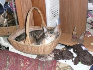 As you can see Grizz is settling in very well. Baskets make the best beds.