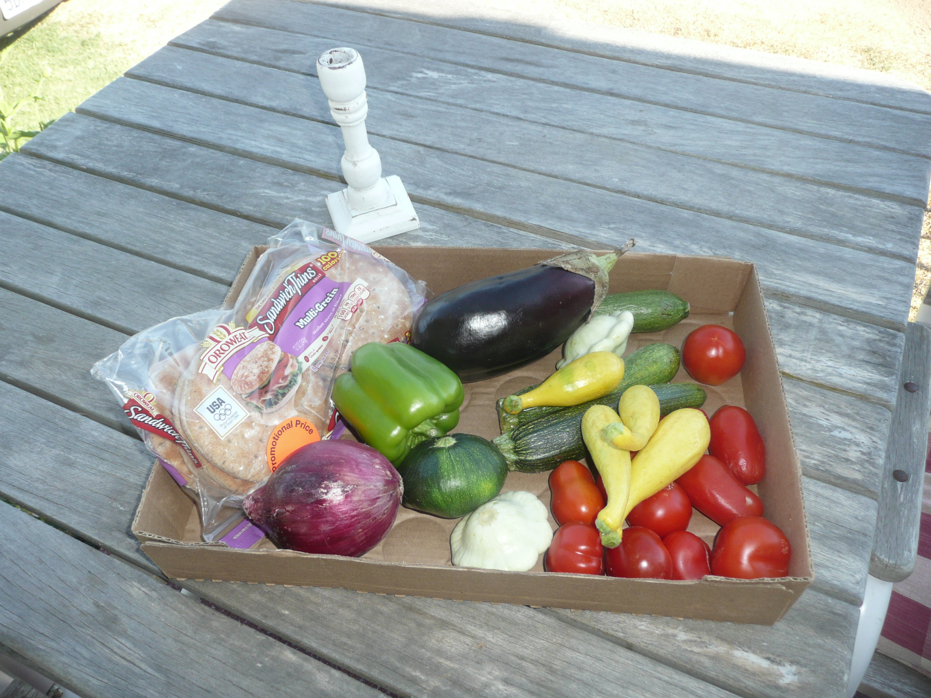 Sauteed veggies on toasted thin muffins make a ‘from the garden” dinner.