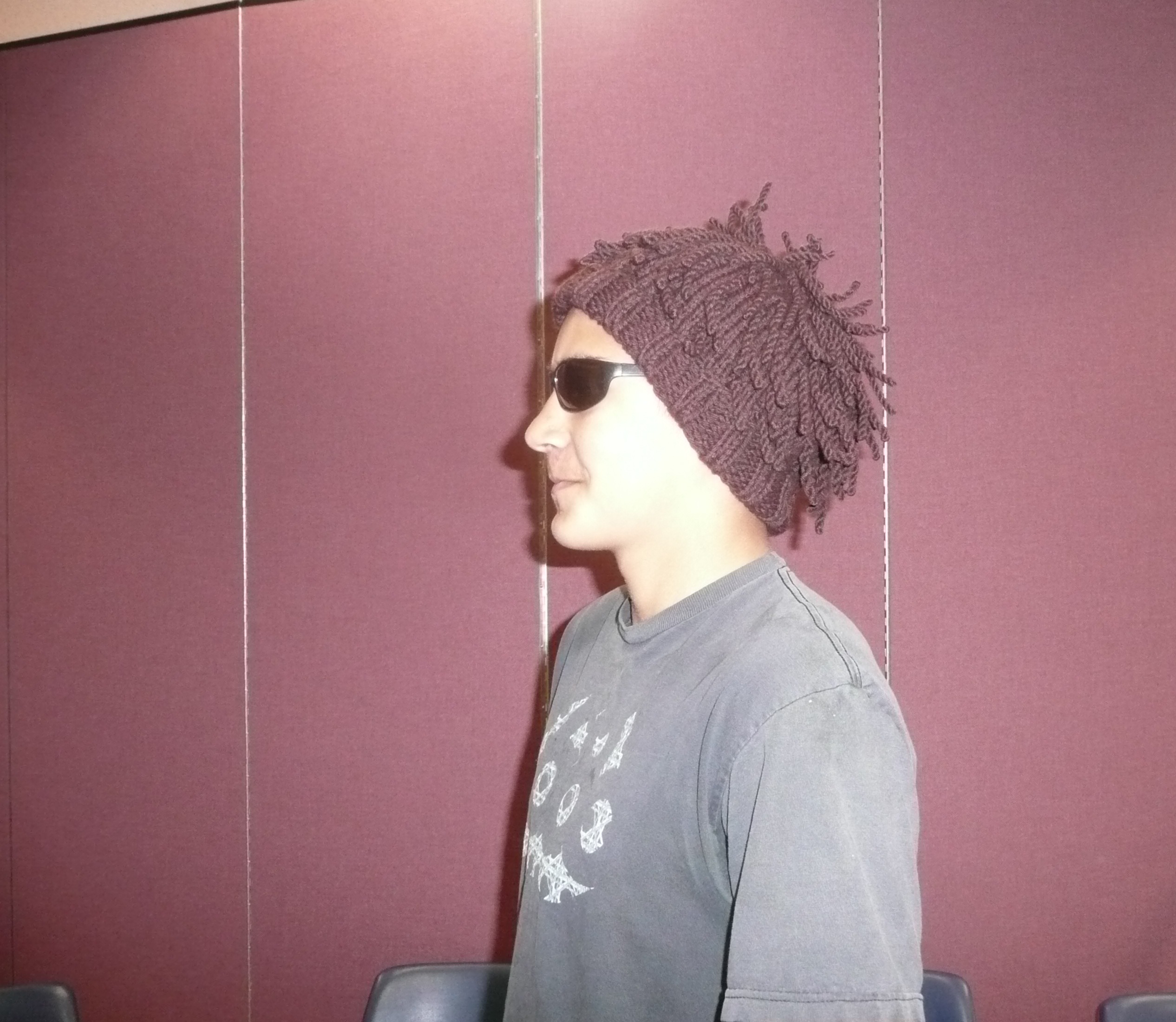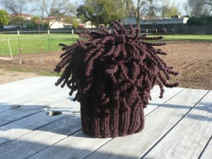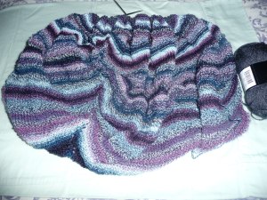 Remember this Wallaby was running out of yarn. It’s now pouting until the knitter figures out just what to do with adding stripes of a complimentary color…..oh well.