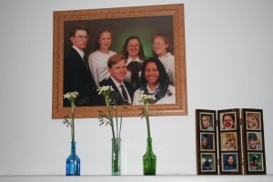 Right above the fireplace is the only professional picture of me and my siblings. It was taken about 15 years ago. Right behind the fireplace is the room that has become my studio. It has been my brother’s living room, my mom and sister’s sewing room, and a play room.