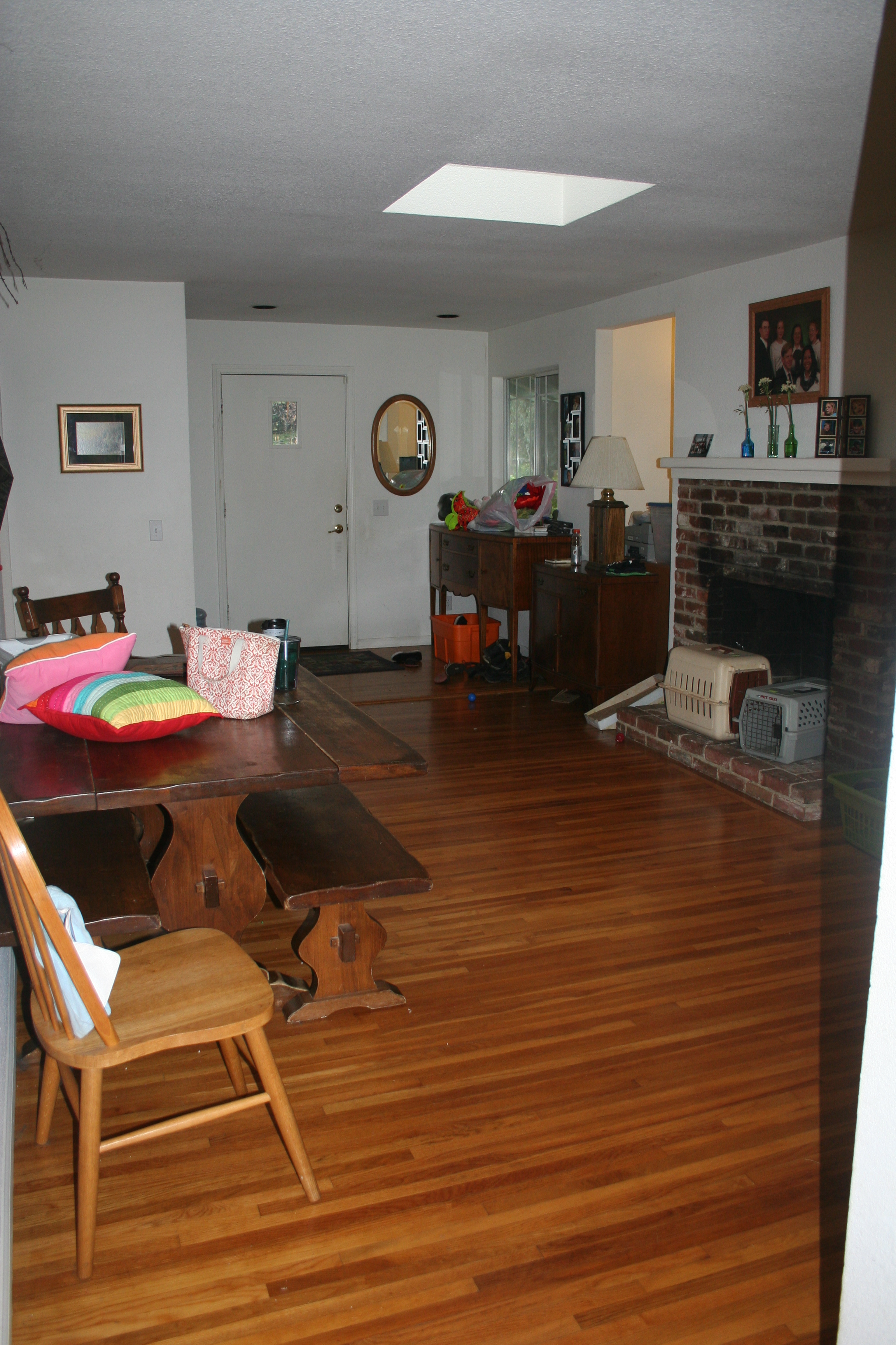 This is the front entry way, from the other end. There is a little lip in the floor, don’t trip. The front fire place that was never used for fire, except the little flames on candles.