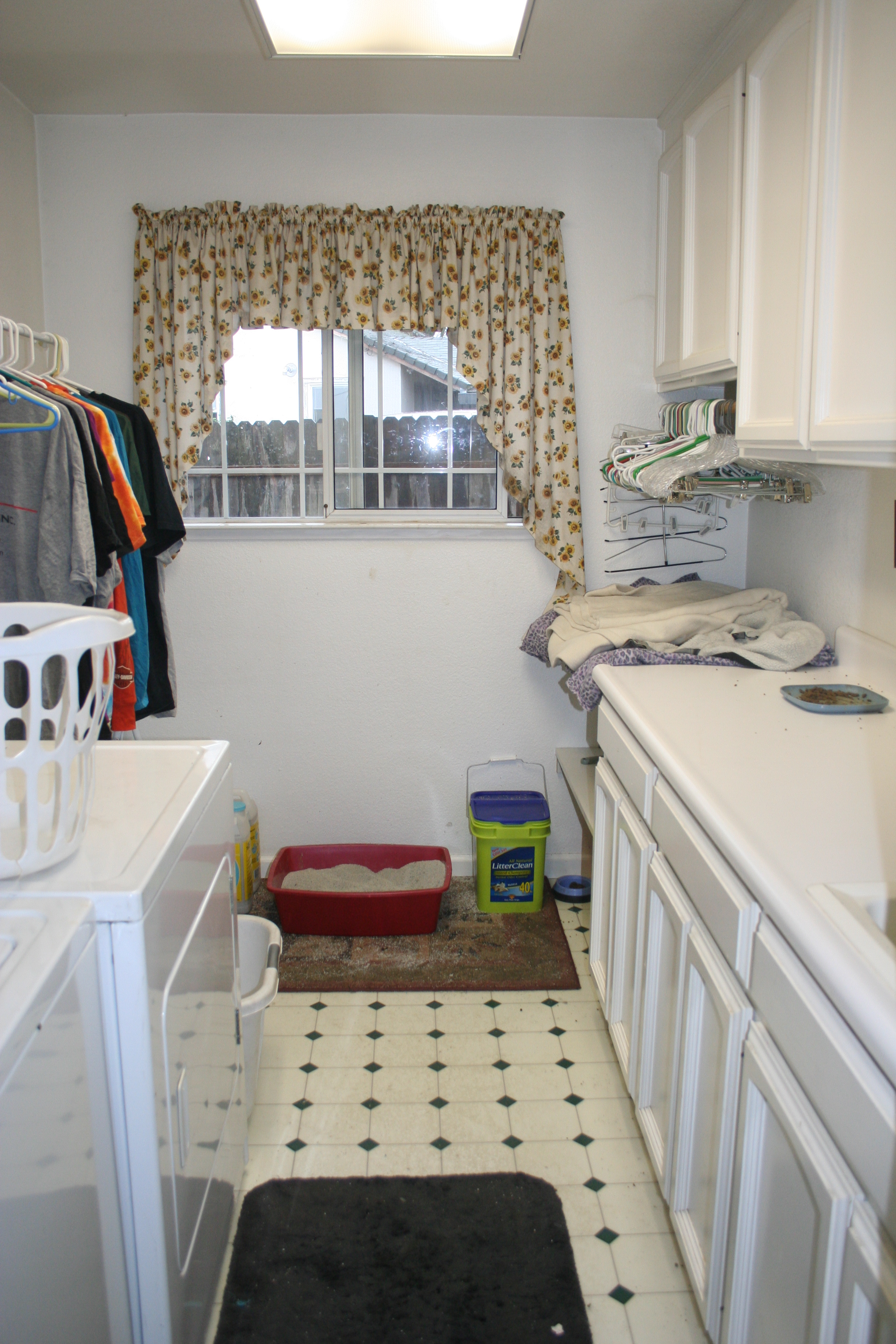 The laundry room and the kitty bathroom all in one.