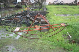 The slide and jungle gym from an apartment complex. I remember when the grand kids attached a hose to the top like we used to and ended up all covered in mud. A chicken coop made from mom, but not the pretty wood one that she wanted. But dad doesn’t do wood, he does steel.