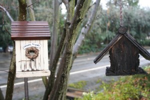 The bird houses hanging in the trees, welcoming feathered beings of all kinds to come and visit.
