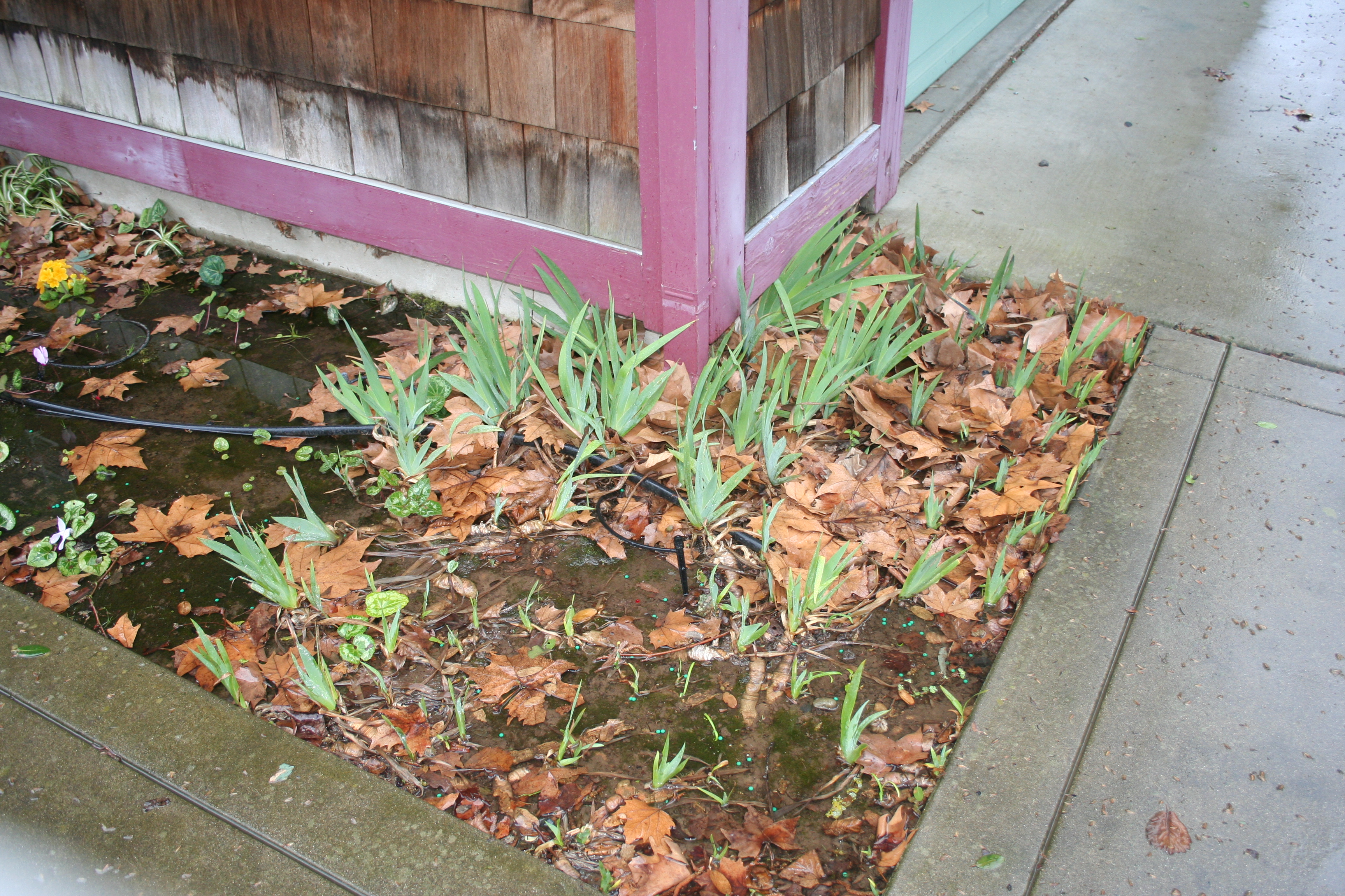 This patch of dirt from the driveway to the door was my mom’s section. The purple iris’ from a Great Grandma populated this corner. I love it when the bulbs pop up and show off their colors.