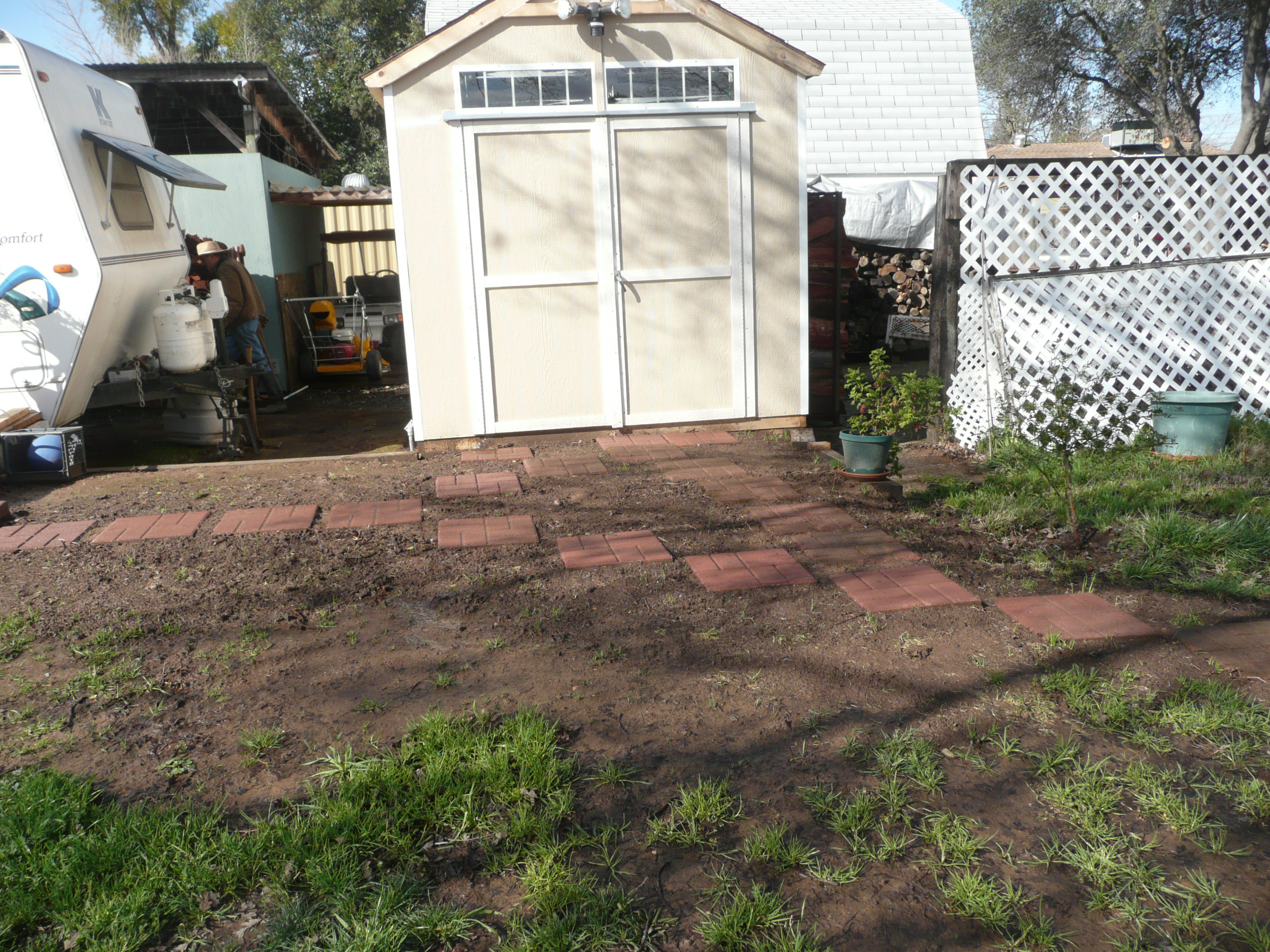 To the left of the front walk you can see where we had a walkway that led to a little stone seating area under the trees. Two iron rocking chairs and a little table, perfect for breakfast on a spring morning. You can still see where the stones had been laid carefully by my dad.