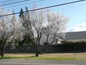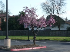 The blossoms in the trees just starting to bloom.