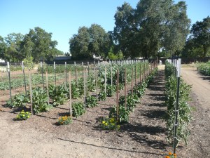 The Farmer’s berries, raspberries, boysenberries and thornless black berries in row in front of two rows of grapes